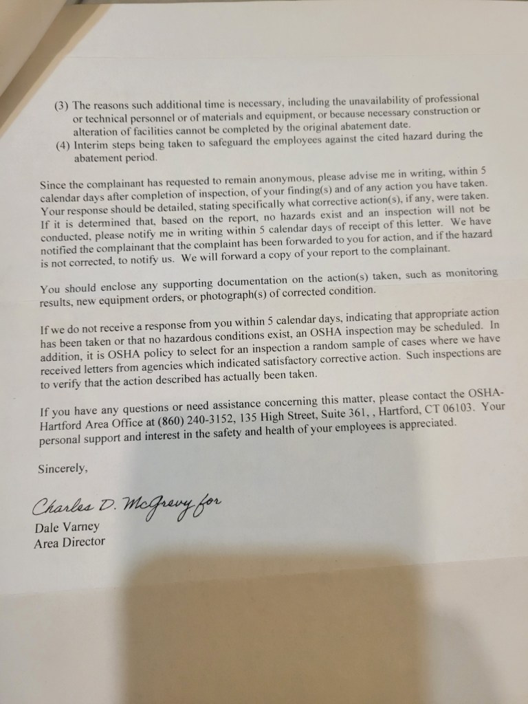 here is sine communication I’ve had with OSHA about a friend who was forced to use N95’s without training fut testing, and medical evaluations. I would call ot criminal Gross Negligence.